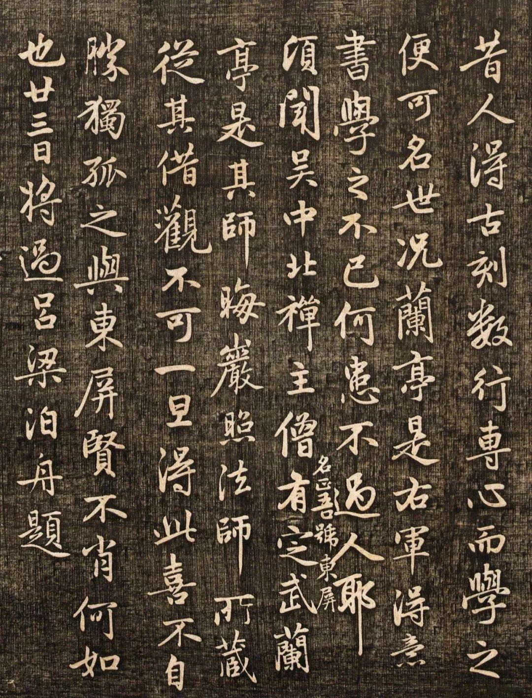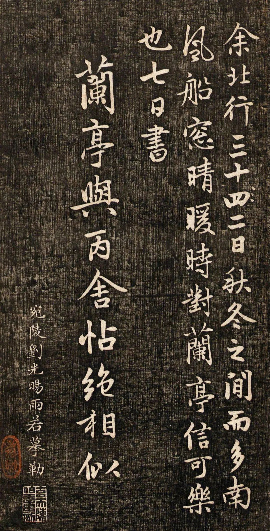昔人得古刻数行,专心而学之,便可名世。况兰亭是右军得意书,学之不已,何患不过人耶。顷闻吴中北禅主,僧有定武兰亭,是其师晦岩照法师所藏。从其借观不可。一旦得此,喜不自胜。独孤之与东屏,贤不肖何如也。廿三日将过吕梁泊舟题。
