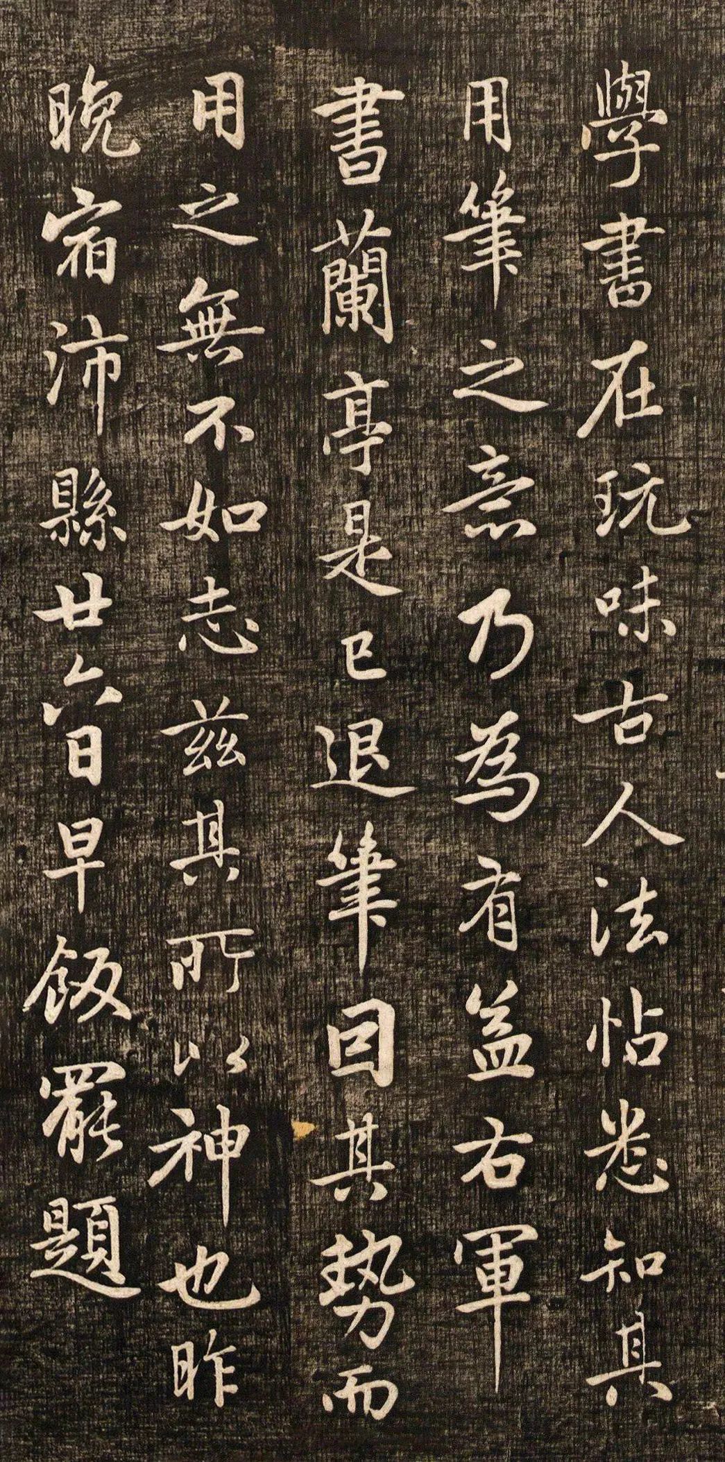 学书在玩味古人法帖,悉知其用笔之意,乃为有益。右军书兰亭是已退笔,因其势而用之,无不如志,兹其所以神也。