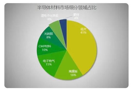 半导体材料种类繁多,根据SIA数据统计,在半导体主要材料当中,硅片占比最高为41%,而靶材占比最低仅为4%。根据工艺流程,可以分为晶圆制造材料和封测材料,根据国产替代的进程,可以划分为替代率较高和替代率较低的两类。