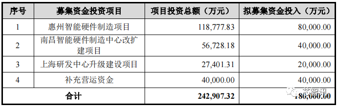 募资18亿元,投向惠州、南昌智能硬件制造项目