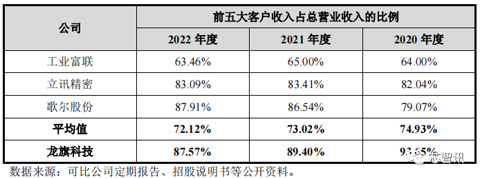 对此,龙旗科技解释称,公司前五大客户的集中度较高,主要是因为下游智能产品品牌商市场份额的集中度较高。