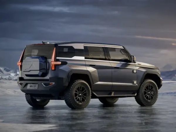 外观方面,猛士917全车都是大量凌厉的线条,细节方面可以看到造型锐利的前脸,车侧有两条有力的线条从A柱下方延伸到车尾,将整体车身视觉长度拉长的同时,提升了硬派越野车的气息,车尾悬挂的备胎更将这一属性进一步进行强调。