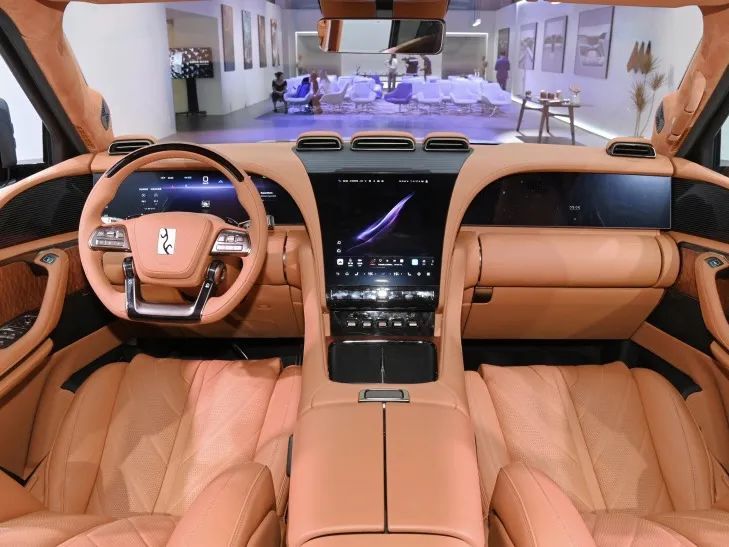内饰方面,12.3英寸全液晶仪表搭配12.6英寸竖置中控屏幕,对称轴的中心设计仍然是红旗的拿手好戏,车内也遍布新红旗的徽标元素,搭配车内大量钢琴烤漆和木纹装饰件,档次感十足。