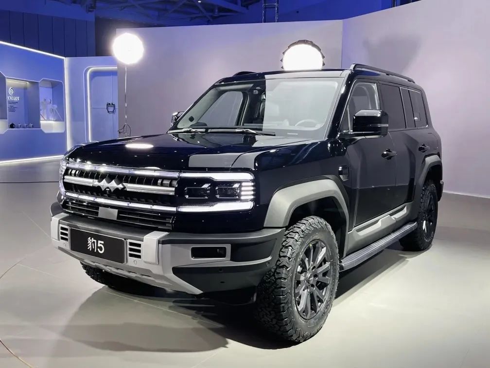 外观方面,豹5采用非常典型的硬派越野设计风格,新车应用大量横向线条和隆起的线条,打造出了强烈的肌肉感,配备矩形进气格栅,两侧大尺寸的灯组与格栅融为一体,品牌LOGO被放置在格栅中央。车身外部还可以在门把手、行李架、下包围和轮眉等处看到黑色设计,如果不说很难有人能将它和“电动”联想在一起。