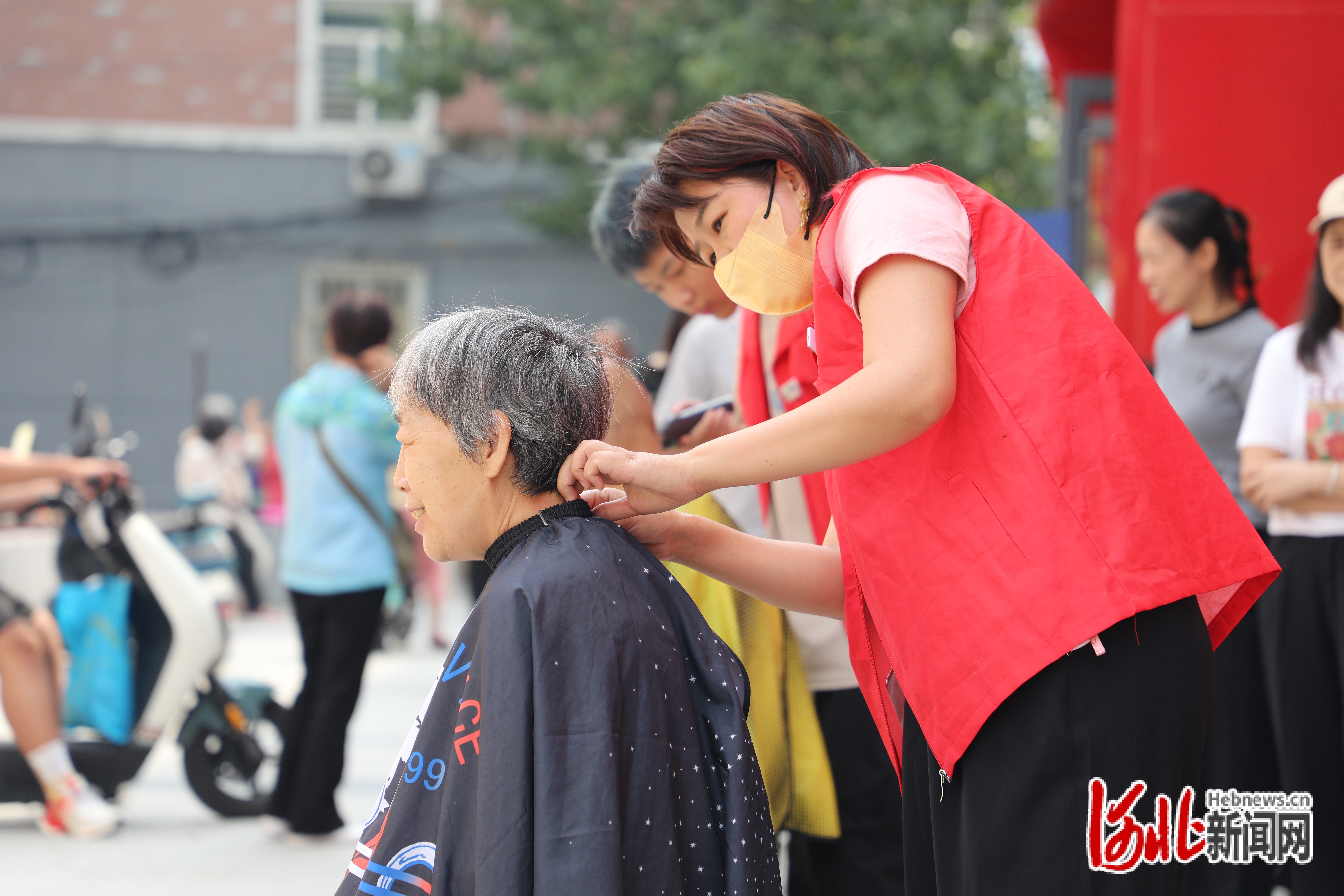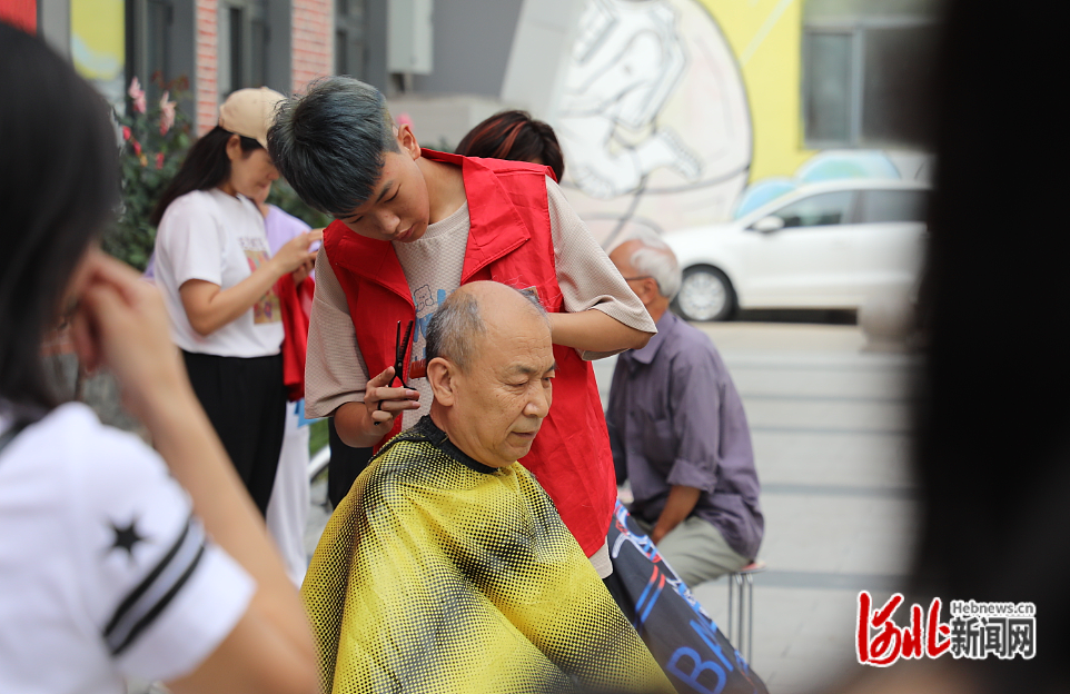 8月25日,纵览新闻联合石家庄市谈固街道建明社区开展“爱心义剪 情暖夕阳”公益活动。 伊川摄
