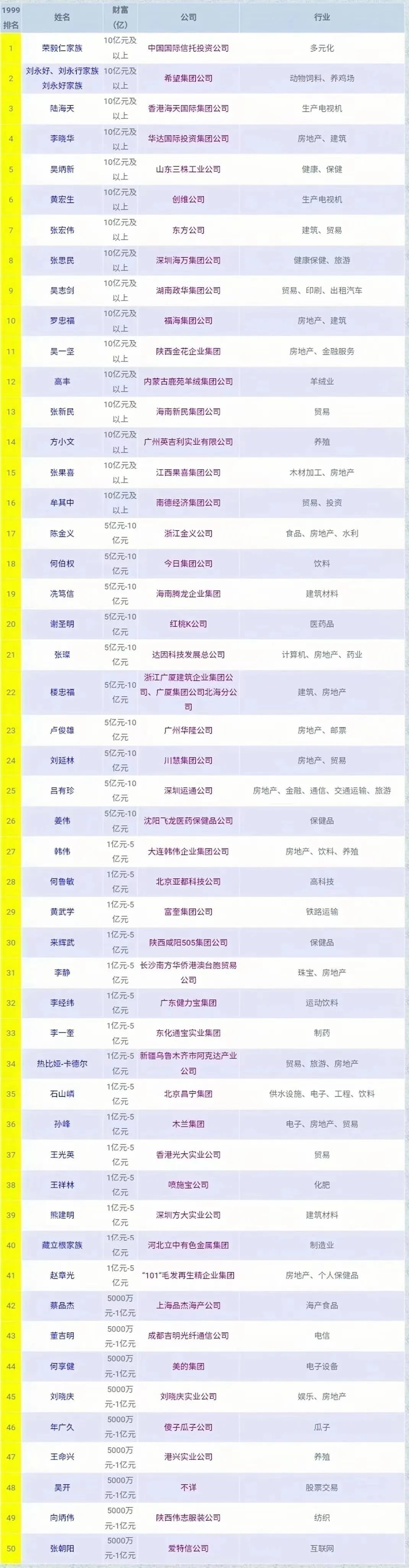 ▲1999中国50富豪榜(点击图片查看全文)