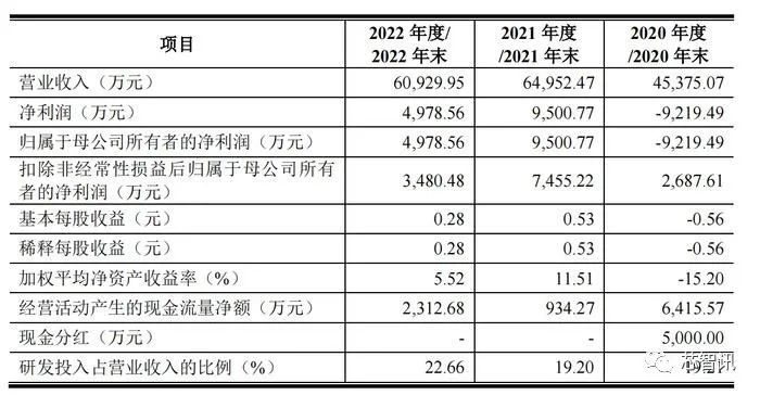 业绩方面,2020年至2022年,泰凌微营业收入分别为4.54亿元、6.5亿元、6.09亿元;归属于母公司所有者的净利润分别为-9219.49万元、9500.77万元、4978.56万元。