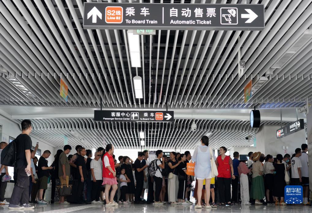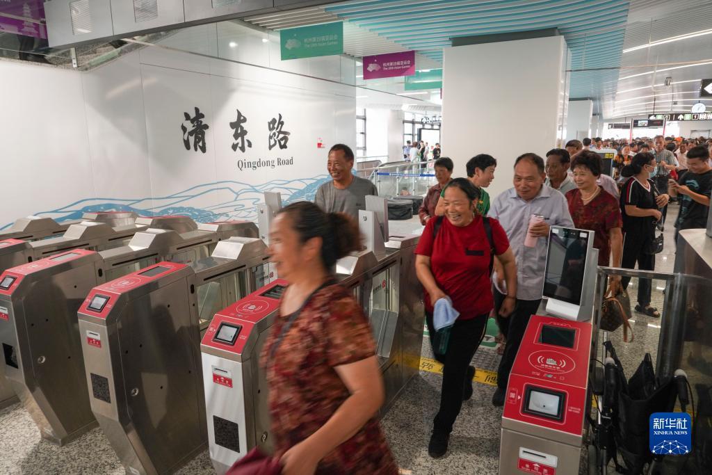 8月26日,在温州乐清市清东路站,体验市民通过检票口。
