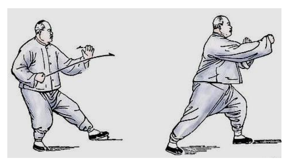(1)掤:是攻守兼备的手法,是前臂掤圆,有向前膨胀向上浮托的意识,架于体前,抵御对方按推自己的防卫方法。旨在使对方之力不能加于我身。搠的关键不在于与对手抗力争衡,而在于旋腰转化。