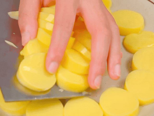 盘底均匀地摆上日本豆腐,再放上鱼肉。