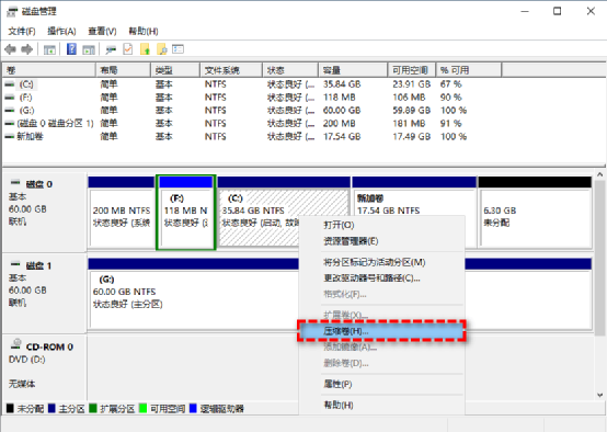 3. 右键点击“D驱动器”,然后选择“压缩卷”。