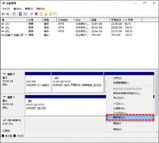 6. 文件顺利迁移后,再次鼠标右键点击“D盘”,然后选择“删除卷”。