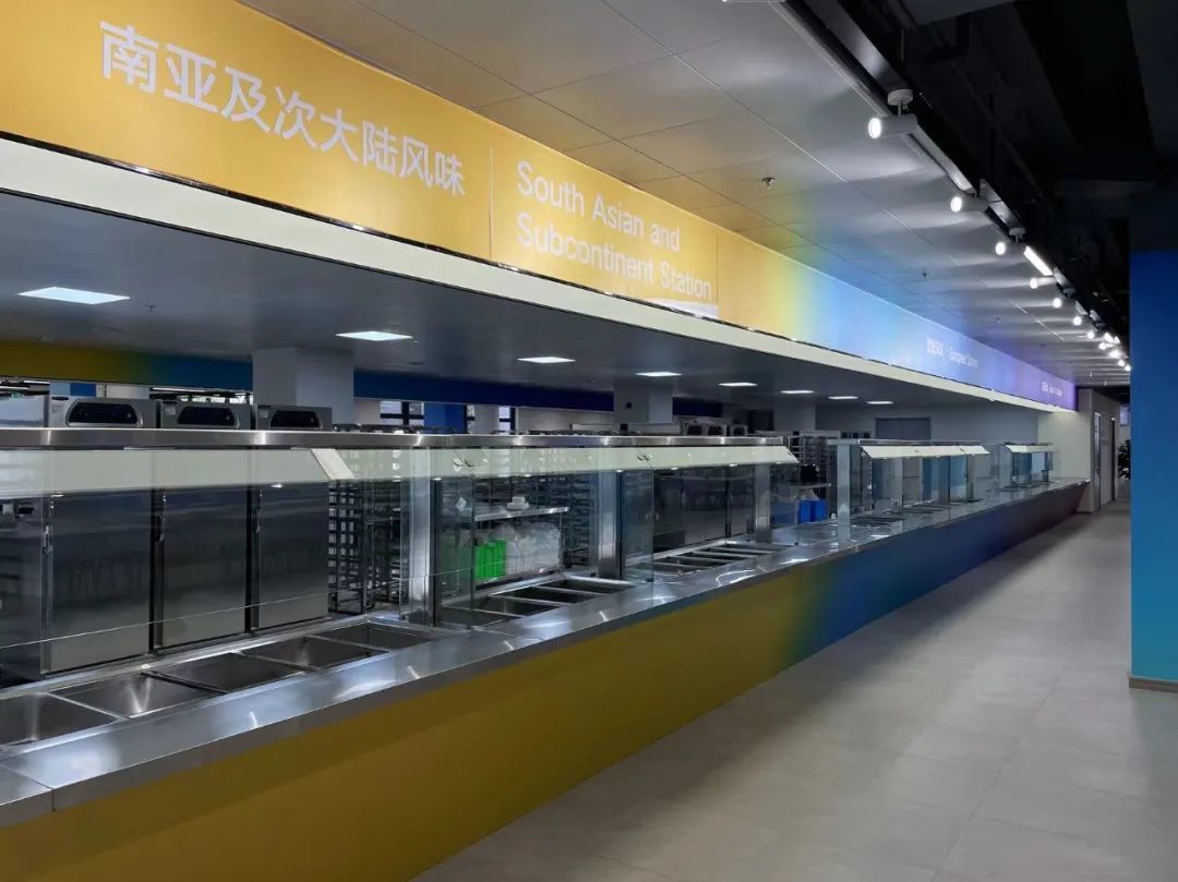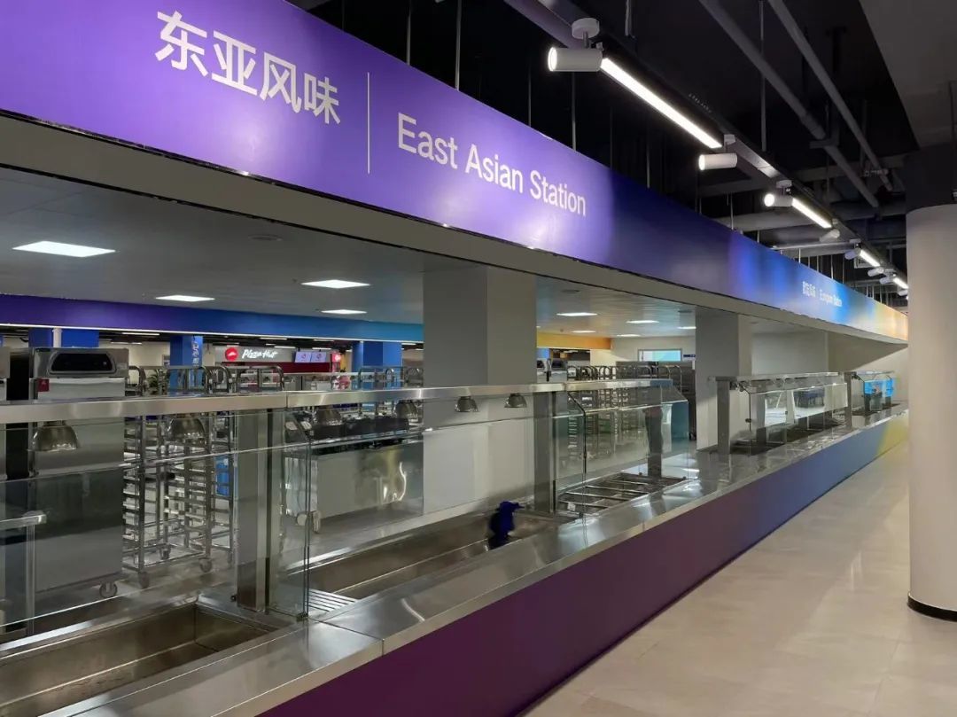 餐厅包含热餐区、冷餐和常温餐区、饮料区、明档区,其中热餐区提供菜系主要为中餐风味(突出杭帮菜特色)、东亚风味、南亚及次大陆风味、阿拉伯及中东风味、欧陆风味,同时加入必胜客和肯德基等西式餐饮。