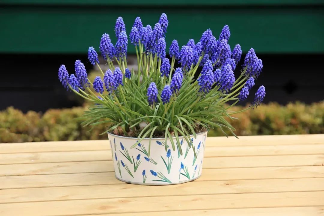 葡萄风信子开出来的花朵就如同一串串葡萄般,花色有常见的白色、粉色和蓝色。它的花朵惹人怜爱,植株矮小,很适合养成盆栽。它的球根适合在秋季的时候栽种,经过冬季适当的低温休眠,就会在春季开花。当然也可以直接买5度球,鳞茎足够饱满,依靠鳞茎本身的养分,在室内窗台也能养开花。