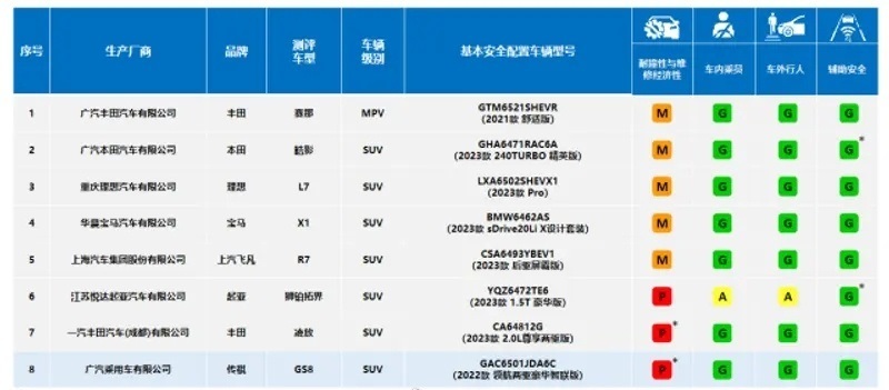 就在几天前,中保研官方公布了最新一批车型的碰撞测试成绩,在清单中,参与此次碰撞的车型为丰田赛那、本田皓影、理想L7、宝马X1、上汽飞凡R7、起亚狮铂拓界、丰田逸致、传祺GS8,一共8款。其中,6款为传统燃油车,2款为新能源车。