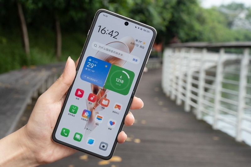 而Find N3 Flip的交互就做得很好,它的外屏与内屏保持了高度统一,顶部下滑打开控制中心,底部上滑返回主页,边缘内滑返回,用起来就好像是一个缩小版的桌面,上手无难度,而且平时回复微信、查看信息什么的都很方便,不用专门打开内屏。实际上,Find N2 Flip的竖向大外屏就已经得到了很多用户的肯定,平时出街经常看到有人在用。