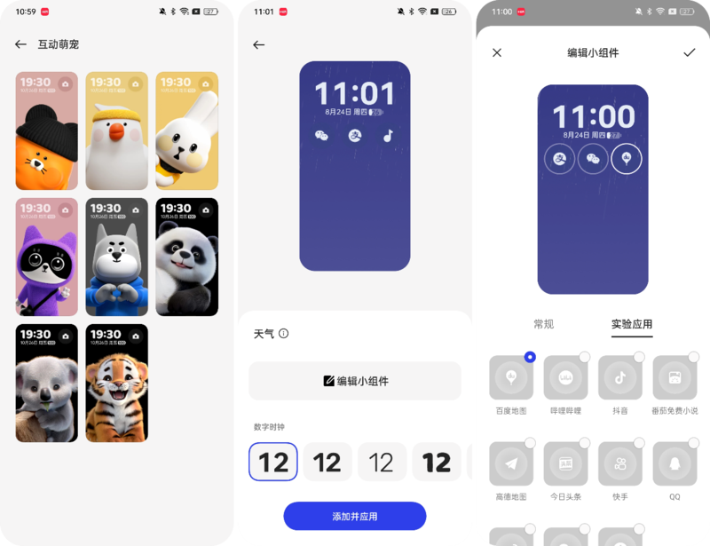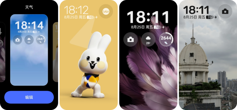 还可以搭配数十款小组件,快速查看天气、步数、电量,打开相机、微信等,自定义程度超高。如果这些都不够,还可以通过主题商店下载100+款互动壁纸,包括线条小狗、肥肥鲨等超多热门IP。