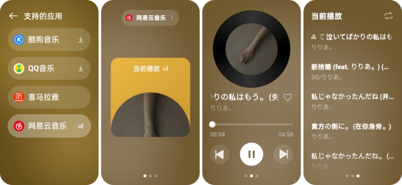 口袋播放器也已经适配QQ音乐、网易云音乐、酷狗音乐和喜马拉雅,可以直接在外屏选择播放列表、控制播放、查看歌词等,并且还支持拖拽进度条,播放到喜欢的歌曲还可以顺手点一个收藏,非常实用。