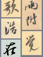 所谓开,是指字的笔画有向外拓展的趋势;所谓合,是指字的笔画呈向内聚拢的趋势。开合又称“向背”,背者为开,向者为合。米行书中宫紧收,结字以开(背)为主,颜行书外紧内松,结字以合(向)为主。其实每位书家的结字都有开有合,或开中有合,合中有开,如此方显得生动。