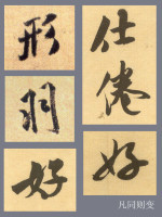 一字内有相同的点画要处理得不雷同,如“形”字;一字内有相同的部分也要变化,如“羽”字;有相同偏旁部首的字在一起,该偏旁部首也要有变化,如“仕倦”;在一件作品中,同一字多次出现,也要求变化,如《苕溪诗》中几个“好”字的变化。