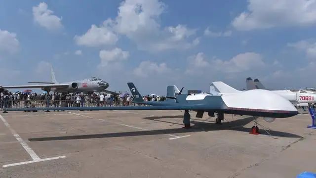 BZK-005中高空长航时无人机,注意其白色卫通天线雷达罩下方的任务标识