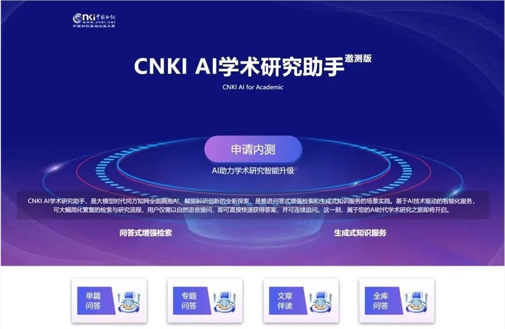 CNKI AI 学术研究助手的线上测试通道已开启,用户可以体验并提供反馈。