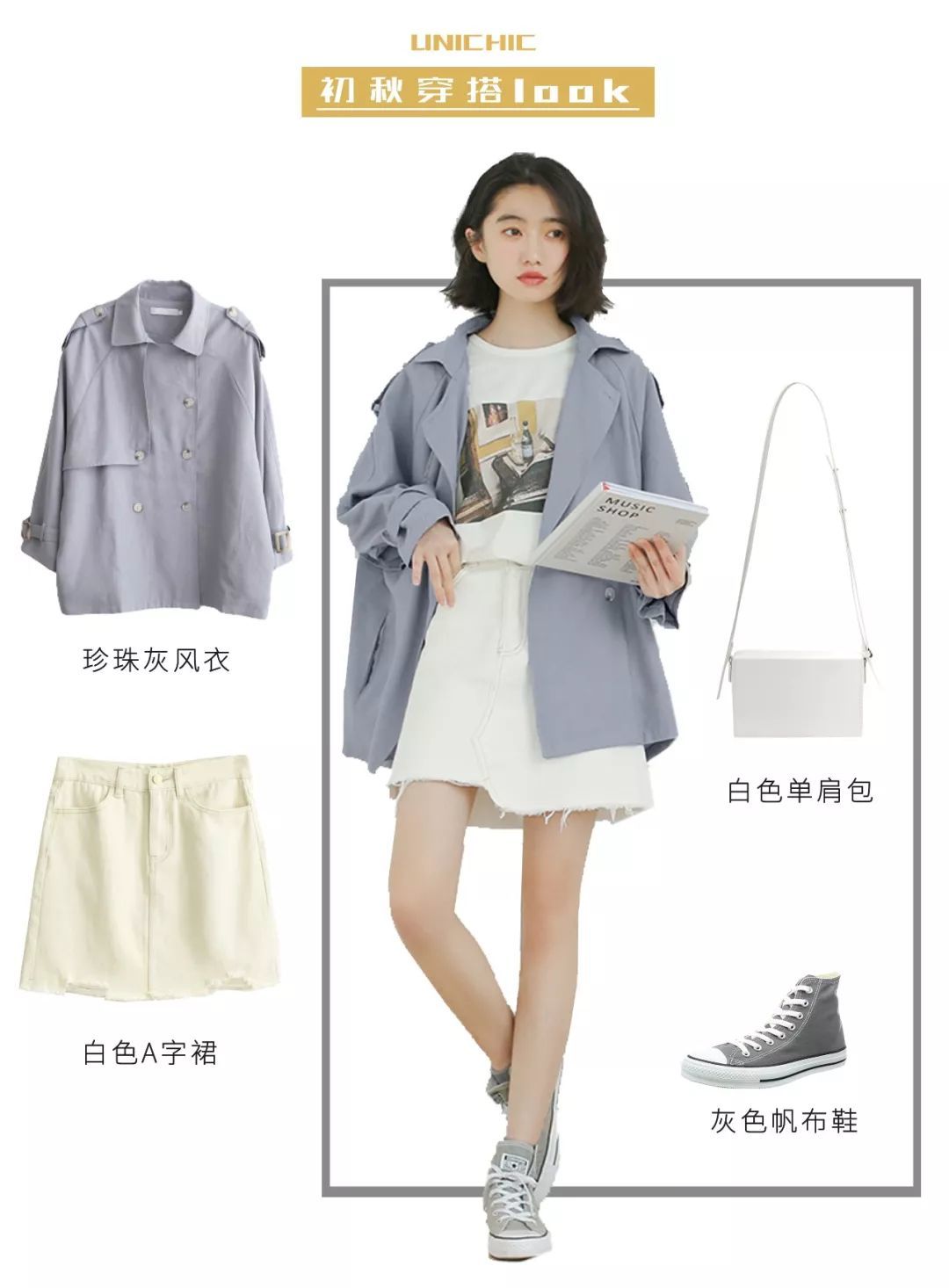 一件基础款风衣完全可以穿三季,挺括的版型很好修饰身材。初秋可以搭配夏天的T恤穿,天冷的时候搭配针织衫也很好看。小编特意选了短款和中长款,都不挑身高哦~
