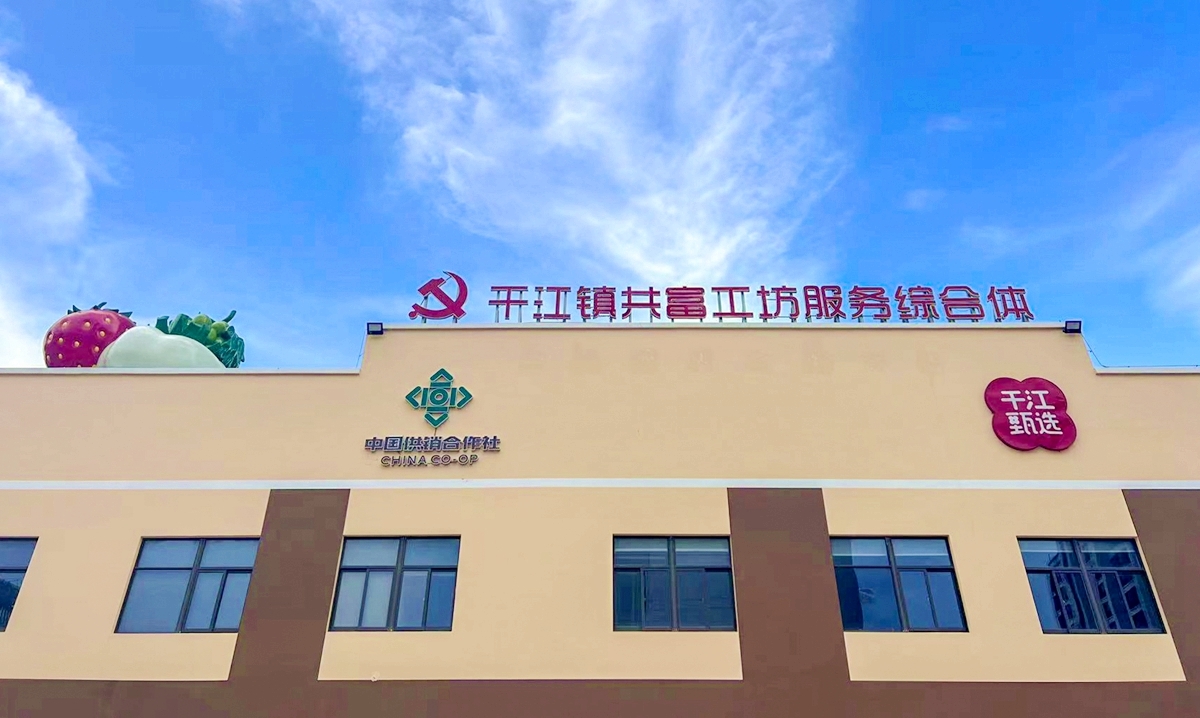 在老傲前村,村企合股的干江镇共富工坊服务综合体即将投用。走进一层,是面积近750平方米的农贸市场,主打农旅品牌“干江甄选”,各摊位将汇集玉环全市特色农产品;来到二层,一个开放式直播舞台映入眼帘,该层不仅有农创客电商直播,还具备农产品包装设计、共享空间等功能。