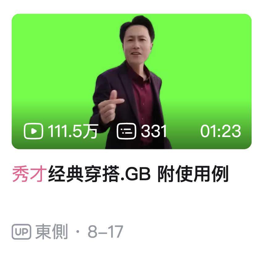 那些关于秀才的二创视频,看到封面你基本就能猜到具体内容,但这和观众们点进去并不冲突。看完视频,照样哈哈直乐。