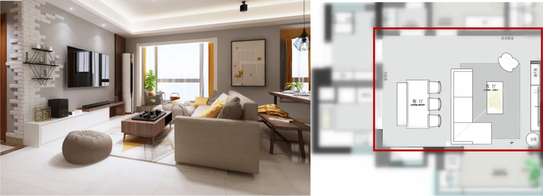 比如小户型,客厅与餐厅单独拎出来的话,面积都比较小。