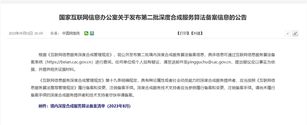 站长之家9月1日 消息:今日,国家互联网信息办公室发布了第二批深度合成服务算法备案信息。