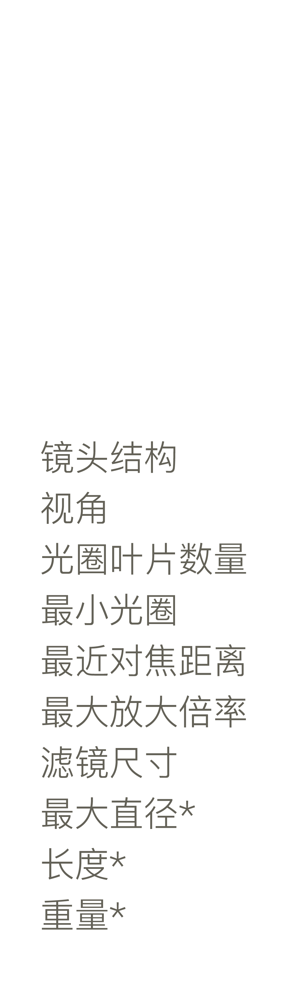 F1.4的大光圈可提供出色的分辨率和柔美的焦外效果,因此在拍摄风景、肖像和静物等领域表现力出色。为了充分发挥无反相机的高便携性,镜身在设计上也追求紧凑性。