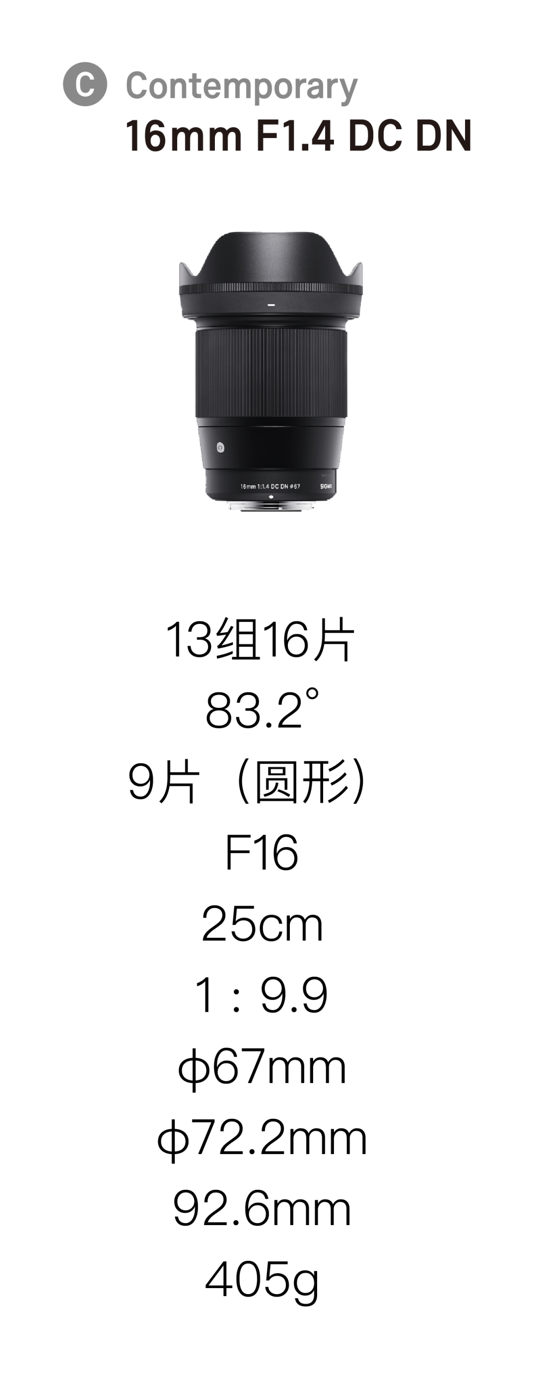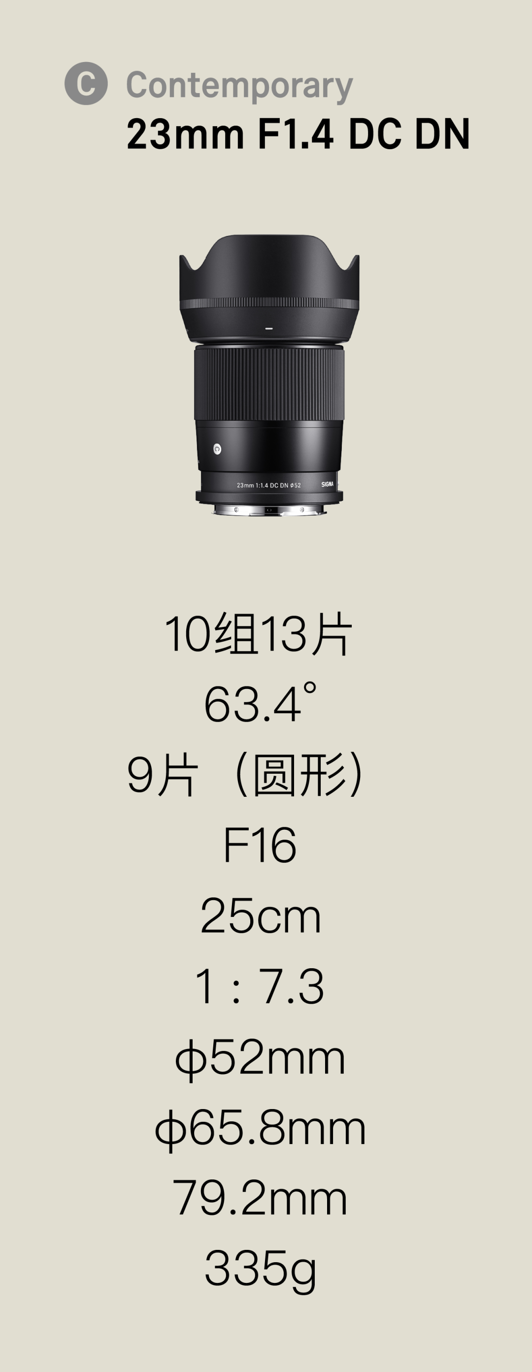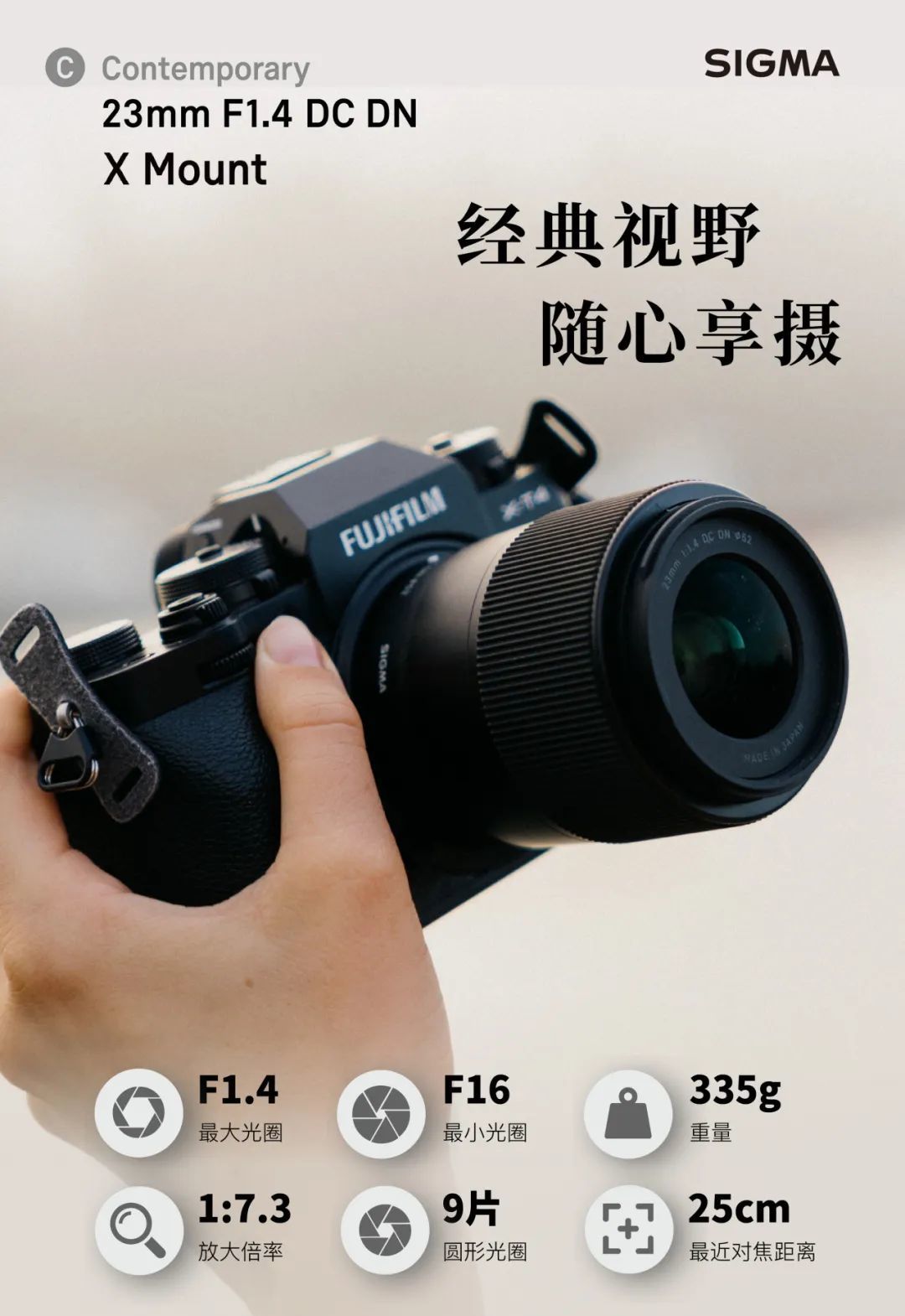 SIGMA 23mm F1.4 DC DN | Contemporary镜头拥有易于使用的35mm*视角,小巧轻便的同时具有高画质和F1.4大光圈的高明亮度。这使得该镜头成为适用于APS-C无反相机的理想镜头,目前已支持富士X卡口。