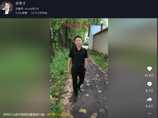 虽说被B站用户百般恶搞,但这个叫秀才的男人在抖音却是个实打实拥有一千多万粉丝的网红。