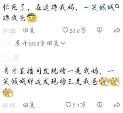 随着秀才和一笑倾城破了圈,无数年轻人也纷纷到他俩的评论区团建。