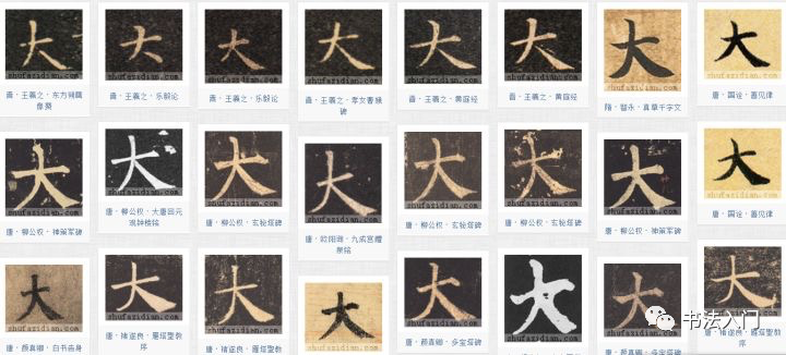这基本形成了他的个人特色。通常来说,字中撇捺组合,在上者撇低捺高,在中者撇捺相平,在下者撇高捺低。比如:
