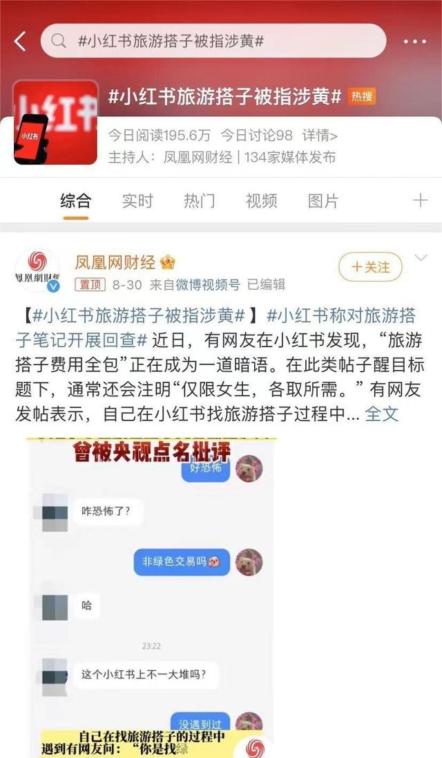 在这种隐藏规则下,小红书“涉黄”登上热搜。随着舆论的发酵,很快小红书做出了回应,表示已经注意到了这个问题,正在对站内“旅游搭子”的相关笔记展开调查,一旦发现情况属实,将会依法对违规用户进行严肃处理。