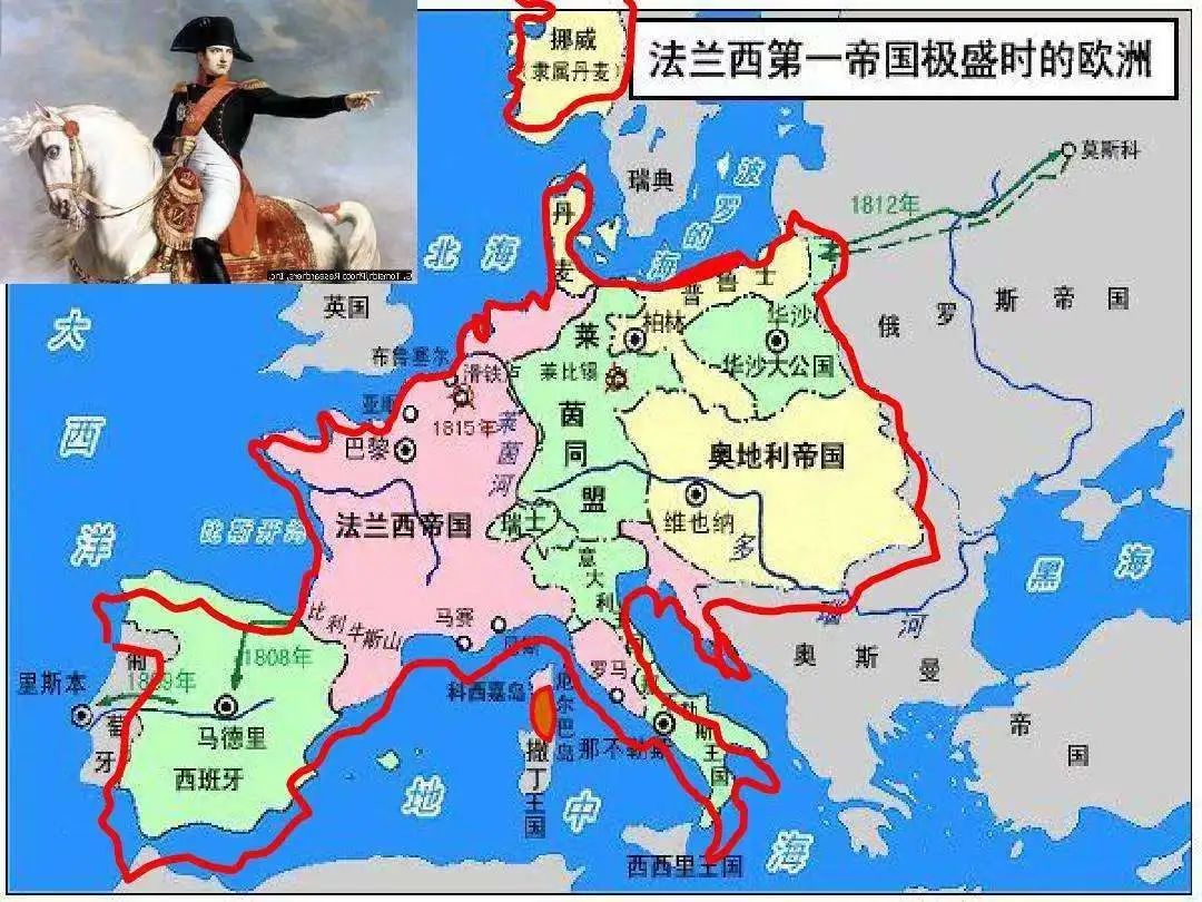▲极盛时期的法兰西第一帝国,囊括了欧洲大部分地区