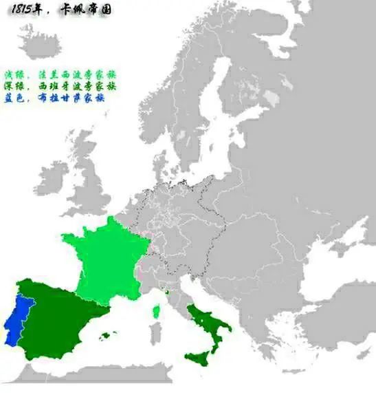 ▲欧洲统治西班牙、法国、意大利北部的跨国王朝——波旁王朝