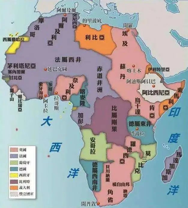 ▲19世纪末欧洲列强瓜分非洲