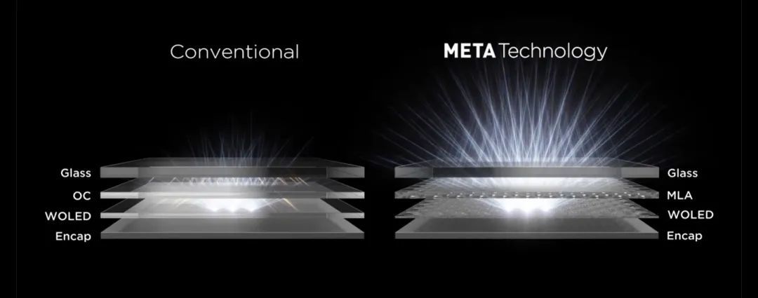 MLA 通过在面板内使用数十亿个透镜的均匀图案,可以显著减少内部反射,在减少屏幕功耗延长续航的同时,可以进一步提高屏幕亮度。