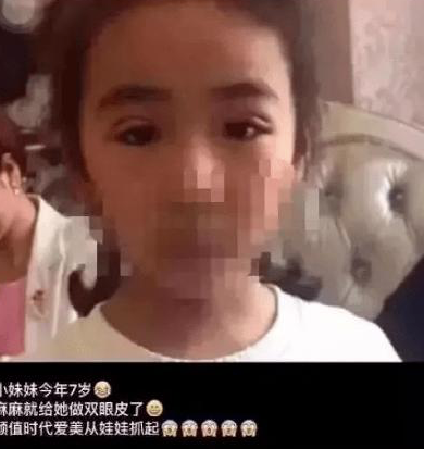 夹鼻骨,绑腿,箍牙齿都算是常规操作了,更让人难以置信的是,孩子才7岁,就给她做了双眼皮手术。