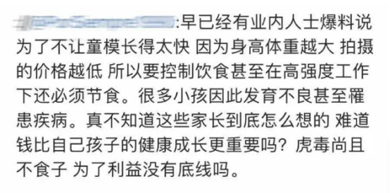 在这个过程中,家长们最担心的,不是孩子的身体健康,而是害怕孩子发育太快,接不到单,赚不了钱。