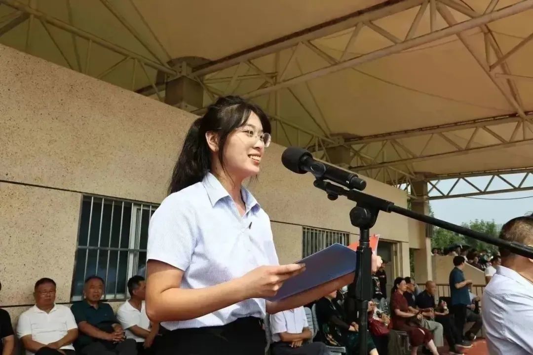 教师代表黄亚楠对 2023级新入学的同学们表示热烈的欢迎,并对同学们提出期望:尽快调整好状态,适应环境;找准方向,定好目标;身体是革命的本钱,希望同学们身强体健。