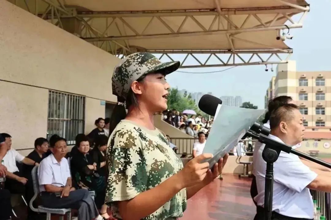 景安琪同学作为新生代表发言,她表示军训是每个学生褪去稚嫩,学会成长的必经之路。身为新时代的追梦学子,应通过军训强健体魄,培养坚韧不拔的意志,为高中三年的学习打下坚实的基础。