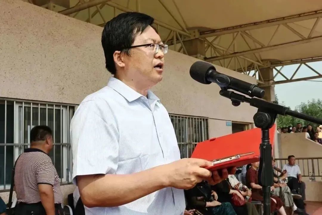 王晓虎校长代表聊城市东方高级中学校委会,向长期以来关心和支持学校发展,并莅临汇报展示现场领导表示热烈的欢迎;向军训期间辛勤工作的教官、坚守岗位的老师们表示衷心的感谢;并对顺利完成军训任务的全体同学表示热烈的祝贺。