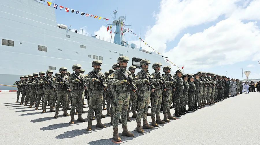 军舰列阵,军旗猎猎。今天上午,中泰双方400余名联训官兵在泰国梭桃邑军港参加“蓝色突击-2023”海军联合训练开训仪式。