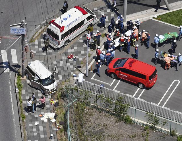 日本老龄化导致交通事故频发。图中白色面包车是一日本大妈所驾汽车冲向幼儿园造成两名幼儿死亡。