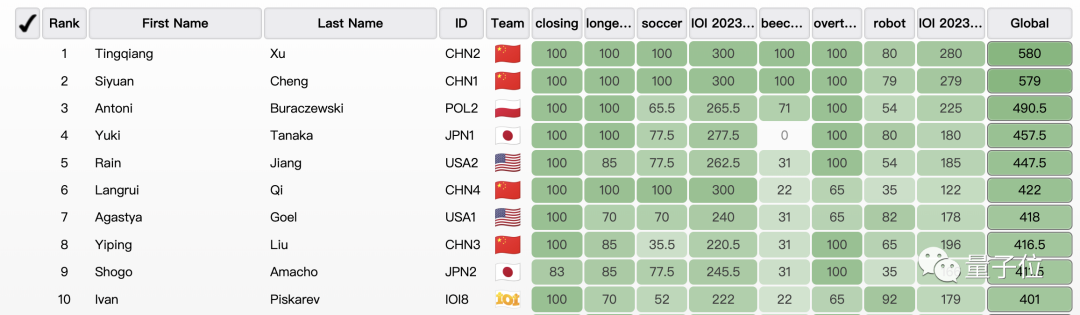 一二名总分分别为580分、579分,仅差一分,相较于第三名波兰选手分差近90分。