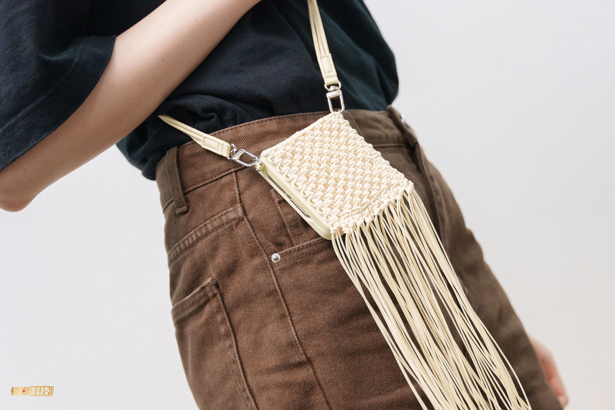 设计师 XU ZHI 带来的则是更柔软的流苏织雨联名款,在纯手工编织的后盖边缘,还有常常的流苏,为原本偏于“冰冷坚硬”的数码产品也能拥有不一样的轻盈飘逸感受。